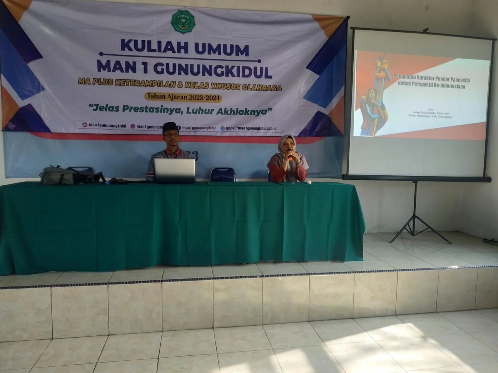 Kepala MAN 1 Gunungkidul, Kholis Muhajir, S.Ag.,M.S.I. menyampaikan ucapan terima kasih kepada tim P5P2RA Fase E yang telah menyelenggarakan kuliah umum sebagai rangkaian penerapan Kurikulum Merdeka. Dengan menghadirkan narasumber yang berkompeten sesuai tema “Bhinneka Tunggal Ika” akan memberikan wawasan yang lebih jelas kepada siswa-siswa kelas X. Siswa dapat melaksanakan kegiatan dengan baik dan lancar sehingga dapat menghasilkan produk yang bermanfaat. Selain itu, juga dapat membentuk jiwa siswa yang mampu memahami keragaman dan semakin bijak dalam bertindak.(thr)