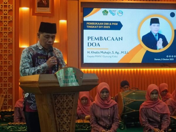 Sleman (MAN 1 Gunungkidul) – Kepala MAN 1 Gunungkidul, Kholis Muhajir mendapat kehormatan sebagai pembaca doa dalam acara pembukaan Olimpiade..