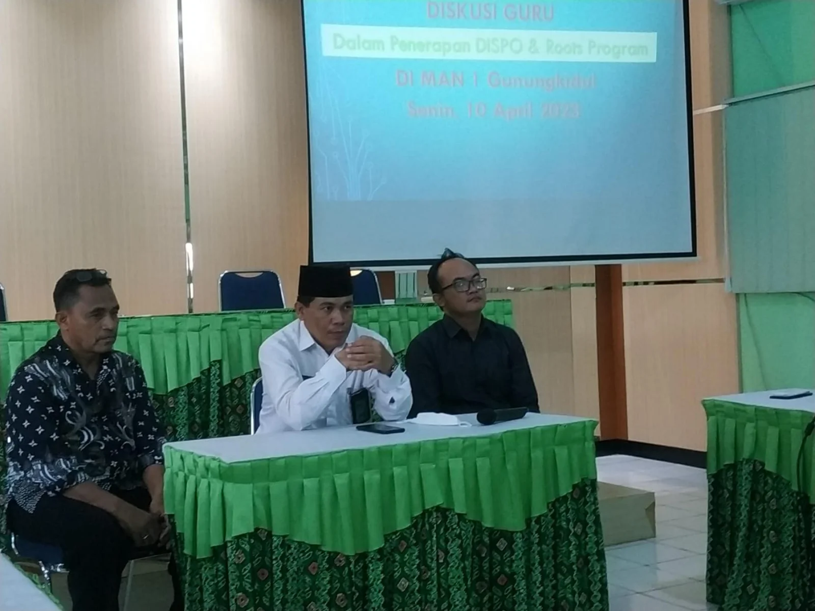 Wonosari (MAN 1 Gunungkidul)- MAN 1 Gunungkidul mengadakan diskusi guru dalam penerapan Dispo dan Roots Program. Kegiatan ini dilaksanakan pada hari Senin (10/03/2023) di aula madrasah.