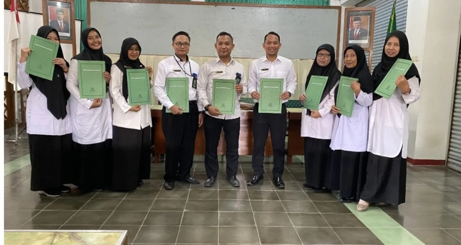Wonosari (MAN 1 Gunungkidul) — Sebanyak sembilan guru MAN 1 Gunungkidul menerima SK kenaikan pangkat periode bulan Juni 2024 pada hari Senin (27/5/2024) di Lantai Dasar Masjid Agung Al Ikhlas Wonosari. Para guru penerima SK kenaikan pangkat yaitu Dra. Heri Purwati, Nur Widyastuti, S.Pd., Herni Purwaningsih, S.Pd., Akhmad Wakhidillah Agung P., S.Pd.I., Andi Taufik, S.Pd.,M.Or., Icha Bimawati Astikasari, S.Pd.,M.Pd., Isnu Hidayat, S.Pd., M.Pd., Shinta Murti Melida Yasi, S.Pd., M.Pd., dan Watsiqotul Mardliyah, S.Pd., M.Pd.