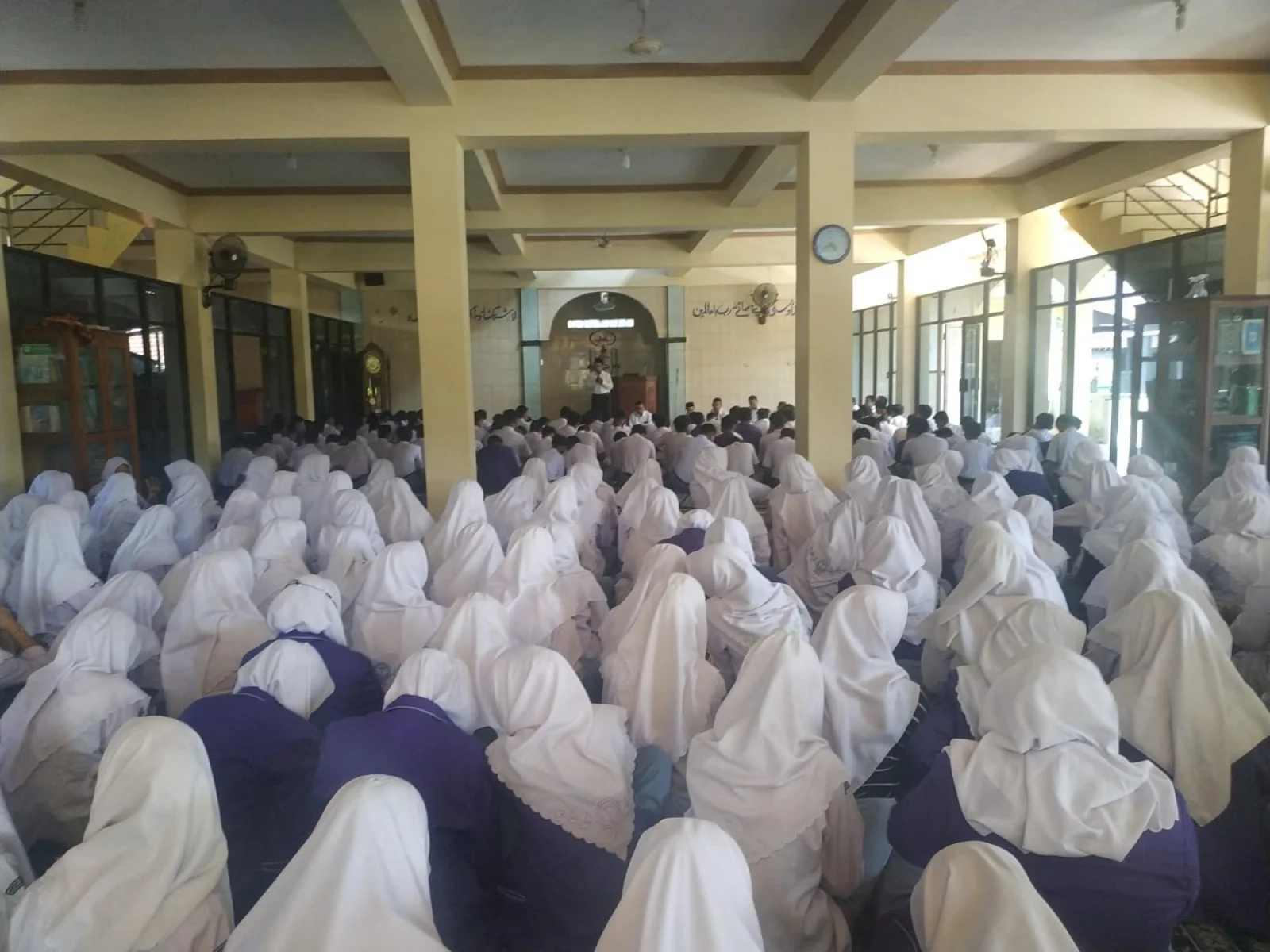 Wonosari (MAN 1 Gunungkidul)- Guru, pegawai, dan siswa-siswi MAN 1 Gunungkidul melaksanakan halal bihalal di Masjid Al Hidayah. Halal bihalal diselenggarakan pada hari Senin (22/04/2024).Perwakilan siswa MAN 1 Gunungkidul, Tessa Nurul Izzah menyampaikan permintaan maaf kepada guru dan pegawai. Perwakilan guru dan pegawai, Sulaiman, S.Ag. menanggapi permintaan maaf tersebut. “Taqobbaalallahi minna wa minkum taqobbal ya karim, kulla ‘amin wa antum bikhair, minal aidzin wa faidzin. Kita saling memaafkan atas segala kesalahan dan kekhilafan. Semoga kita menjadi Fitri,” ujarnya. Acara diakhiri dengan saling berjabat tangan.