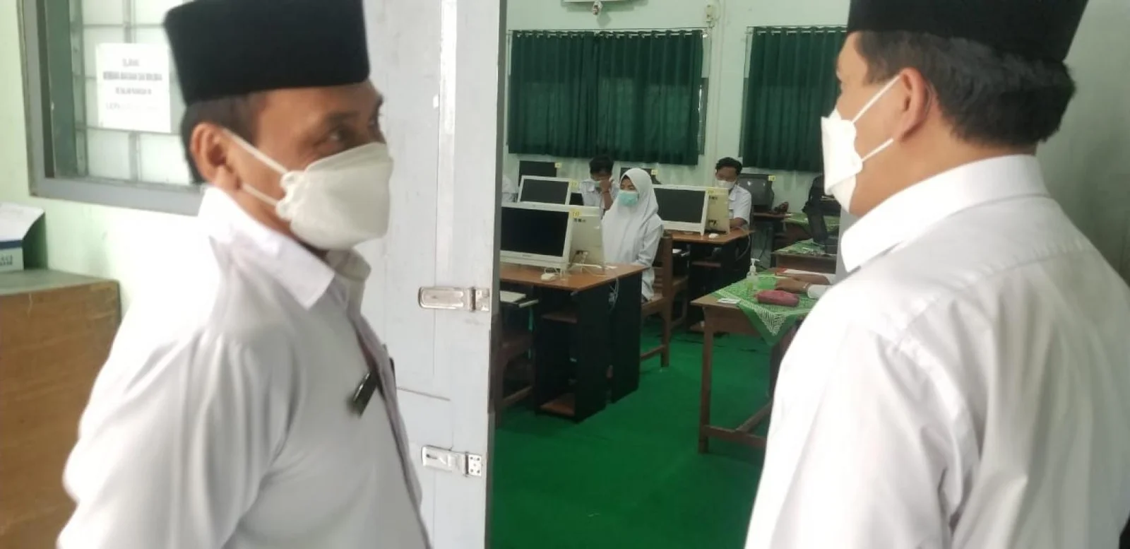 Wonosari (MAN 1 Gunungkidul) – Kepala Kantor Wilayah Kementerian Agama DIY Dr. H. Masmin Afif, M.Ag. melakukan monitoring pelaksanaan ANBK hari kedua di MAN 1 Gunungkidul pada hari Selasa (28/09/2021). Beliau didampingi Kepala MAN 1 Gunungkidul, Kholis Muhajir, S. Ag., M.S.I. memantau pelaksanan ANBK di laboratorium komputer.