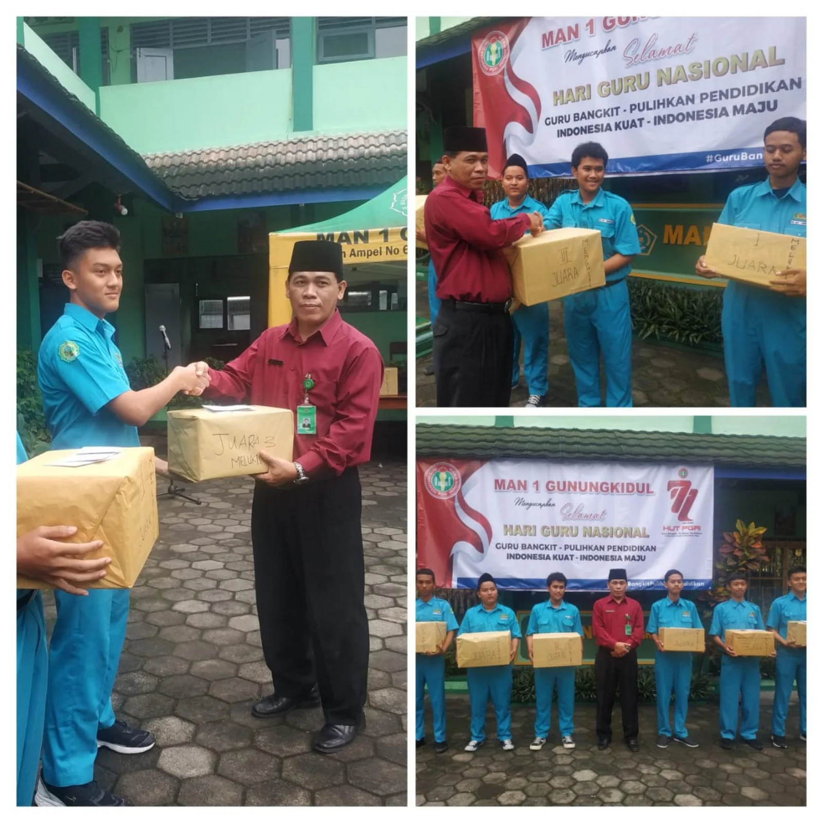 Wonosari (MAN 1 Gunungkidul)- Dalam rangka memperingati hari guru, MAN 1 Gunungkidul mengadakan lomba lukis dan kreasi. Pemenang lomba diumumkan pada hari Sabtu (26/11/2022) . Kepala MAN 1 Gunungkidul memberikan hadiah kepada para pemenang.