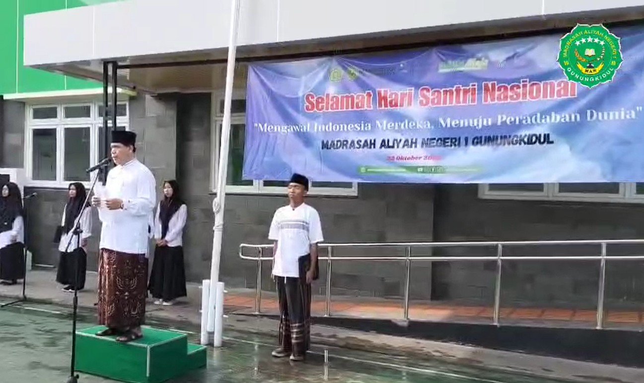Gunungkidul, 22 Oktober 2025 – Segenap guru, pegawai, dan seluruh siswa Madrasah Aliyah Negeri (MAN) 1 Gunungkidul mengikuti kegiatan apel pagi dengan khidmat dalam rangka memperingati Hari Santri Nasional (HSN) Tahun 2025. Apel dilaksanakan pada hari Rabu, 22 Oktober 2025, bertempat di halaman madrasah.