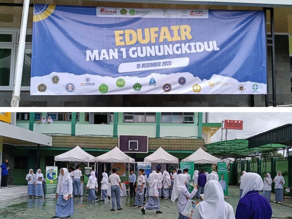 Wonosari (MAN 1 Gunungkidul) – Sebagai upaya memberikan pandangan yang jelas tentang pendidikan lanjutan, MAN 1 Gunungkidul sukses menggelar acara Edufair MANSAGEKA 2025 pada Senin, 15 Desember 2025. Kegiatan ini merupakan agenda tahunan yang bertujuan membantu siswa mendapatkan informasi lengkap seputar perguruan tinggi, jurusan, beasiswa, serta prospek karier.