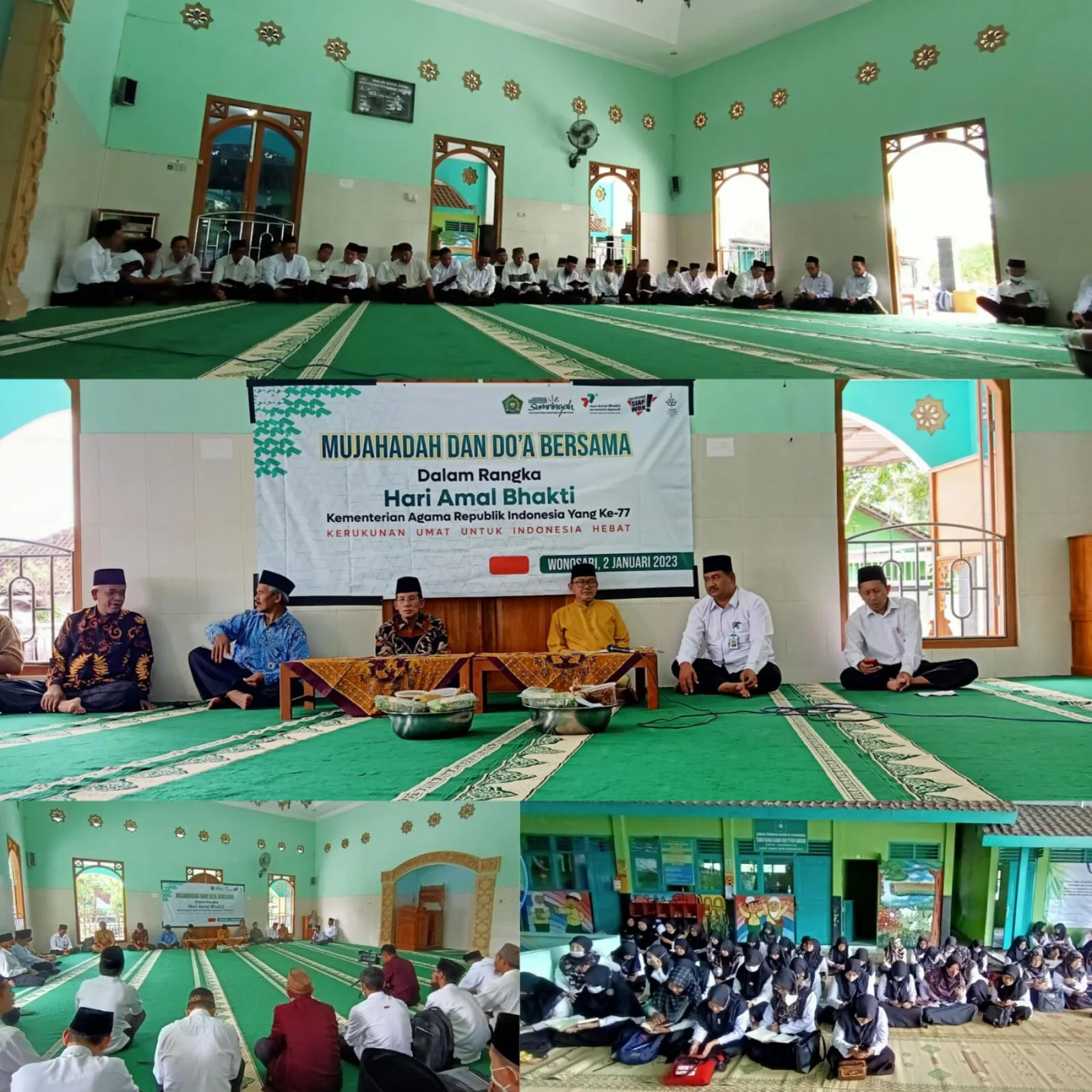 Wonosari (MAN 1 Gunungkidul) – MAN 1 Gunungkidul mengikuti acara Mujahadah dan doa bersama di masjid Nurul Huda Bansari Kepek Wonosari dalam rangka Hari Amal Bakti (HAB) Kementerian Agama RI ke-77 tahun 2023. Acara ini dilaksanakan pada hari ini Senin (2/01/2023).