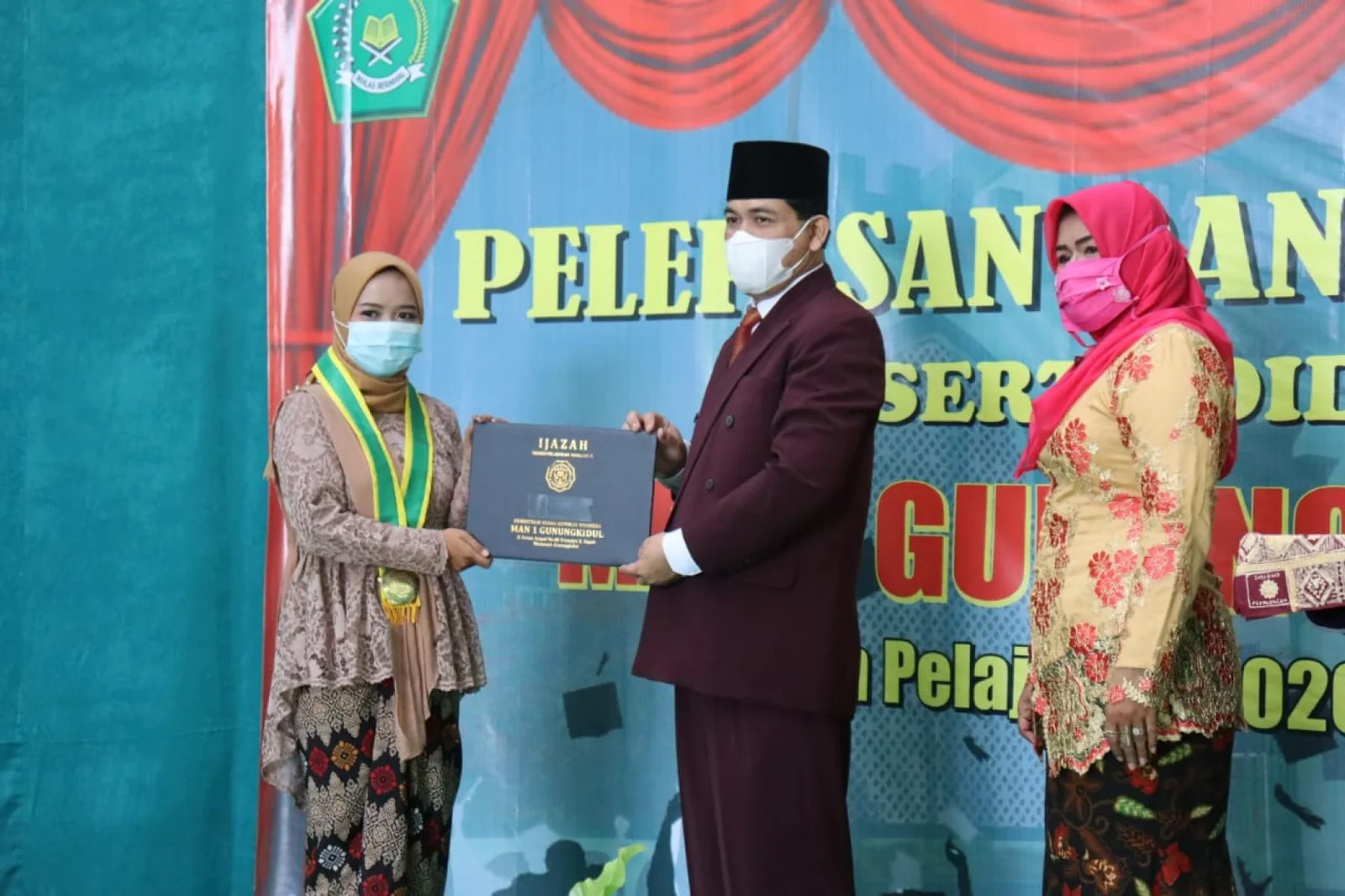 Pembukaan wisuda diawali dengan menyanyikan lagu Indonesia Raya dan dilanjutkan prosesi wisuda. Siwa yang diwisuda datang sesuai jadwal yang sudah ditetapkan. Mereka memasuki area wisuda dengan mengendarai sepeda motor. Setelah pemeriksaan suhu dan menggunakan hand sanitizer lalu motor di parkir di depan panggung. Wisudawan/wisudawati kemudian naik panggung. Kholis Muhajir, kepala MAN 1 Gunungkidul didampingi wali kelas memberikan map ijazah dan mengalungkan samir kepada wisudawan/wisudawati. Kemudian mereka turun panggung, menaiki motor, dan mengambil kenangan-kenangan dari madrasah. Kenangan tersebut berupa bulletin “Gatitas†(Gagasan dan Kreativitas). Bulletin ini adalah karya siswa-siswa MAN 1 Gunungkidul dan dapat dijadikan sumber bacaan yang ringan dan bermanfaat. (ttn)