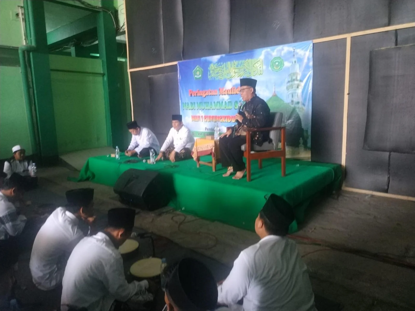 Wonosari (MAN 1 Gunungkidul)- MAN 1 Gunungkidul memperingati Maulid Nabi Muhammad SAW pada hari Jumat (29/09/2023). Seluruh guru, pegawai, dan siswa MAN 1 Gunungkidul memperingatinya dengan menyaksikan penampilan beberapa siswa, sholawat, dan pengajian.Kepala MAN 1 Gunungkidul, Kholis Muhajir, S. Ag., M.S.I. menyampaikan selamat datang kepada Drs. Bukhori Muslim, M.Pd.I. Seluruh peserta diharapkan mengikuti tausiah dengan hikmat. Hal ini akan memberi manfaat, menambah wawasan keilmuan yang akan menjadi bekal untuk meraih masa depan. Tausiyah diisi oleh Drs. Bukhori Muslim, M.Pd.I. menyampaikan rahasia kesuksesan Nabi Muhammad SAW dalam berdakwah yaitu mempunyai landasan spiritual yang kuat (akidah, ibadah, dan akhlakul karimah), persiapan mental yang kuat, bersungguh-sungguh menyampaikan dakwah, dan mempunyai target yang jelas. Enam hal untuk menjadi sukses yaitu menjadi orang cerdas, trengginas, bersabar, taat dan patuh kepada guru, kata dan perbuatan sama, memiliki backing yang kuat (doa).(thr)
