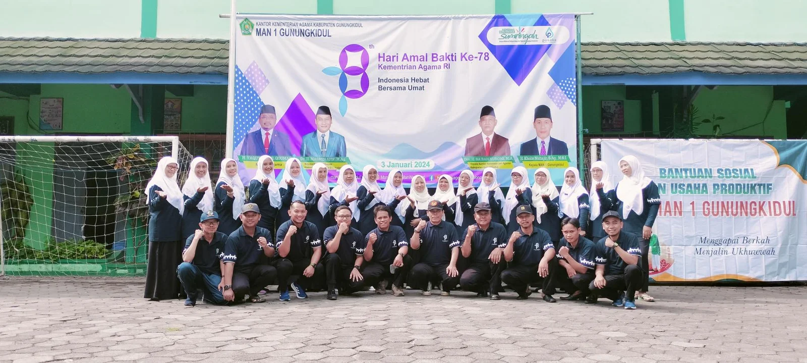 Wonosari (MAN 1 Gunungkidul)- Guru dan pegawai MAN 1 Gunungkidul bersemangat membersihkan Masjid Al Hidayah setelah apel HAB Kemenag RI ke-78. Kerja bakti membersihkan masjid dilaksanakan pada hari Rabu (3/1/01/2024).Kepala MAN 1 Gunungkidul, Kholis Muhajir,S.Ag.,M.S.I. menyampaikan bahwa kegiatan ini sebagai wujud kepedulian terhadap lingkungan khususnya kebersihan tempat ibadah. Masjid Al Hidayah merupakan tempat ibadah yang digunakan oleh seluruh civitas akademika MAN 1 Gunungkidul. Semoga kegiatan ini dapat meningkatkan kepedulian lingkungan khususnya dalam menciptakan lingkungan yang bersih, nyaman, dan aman.(thr)