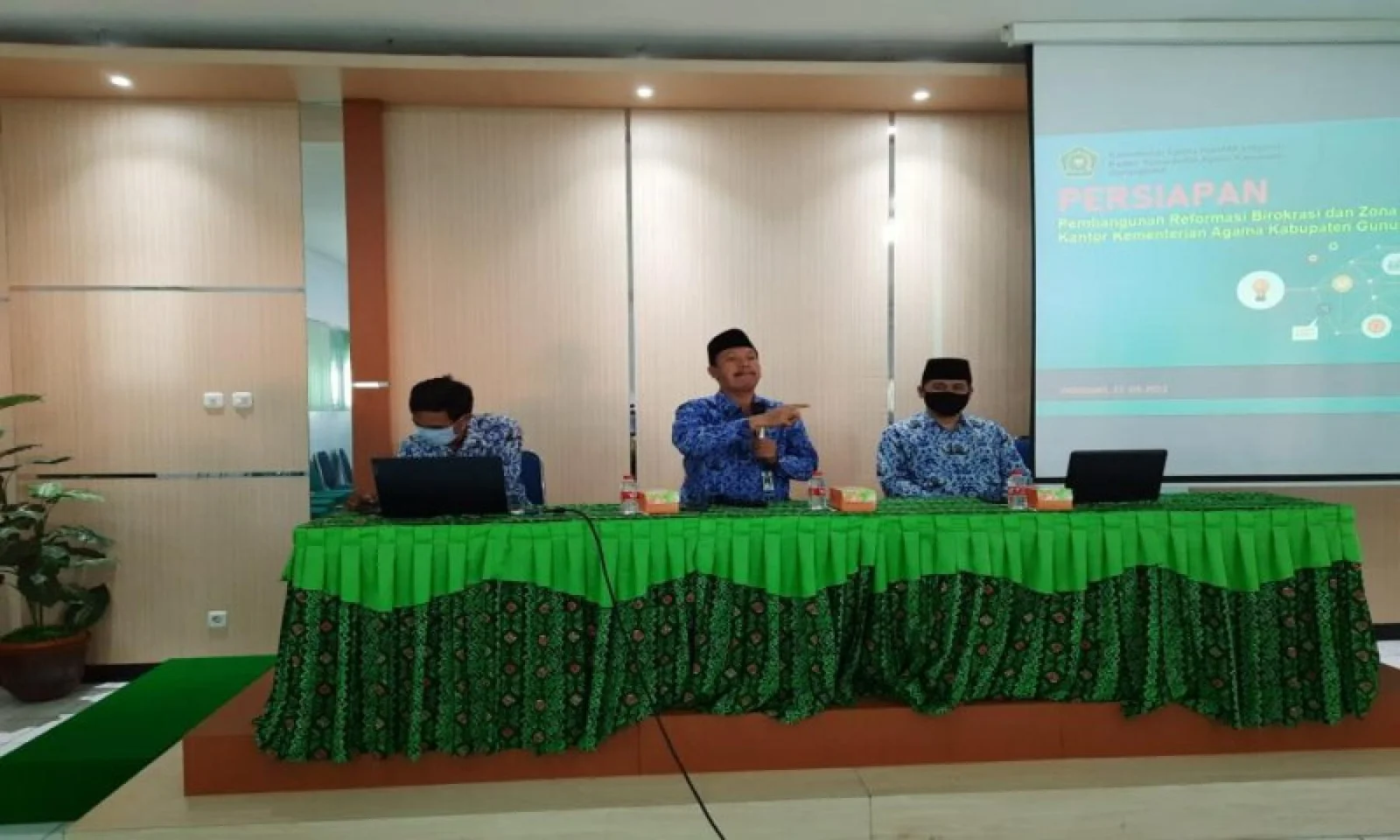 Gunungkidul (MAN 1) – Sebagai bentuk persiapan madrasah menuju Zona Integritas (ZI) Wilayah Bebas dari Korupsi (WBK) dan Wilayah Birokrasi Bersih Melayani (WBBM), Madrasah Aliyah Negeri (MAN) 1 Gunungkidul menyelenggarakan pembinaan awal bagi seluruh pendidik dan tenaga kependidikan di ruang aula pertemuan, Rabu (17/03/2021).