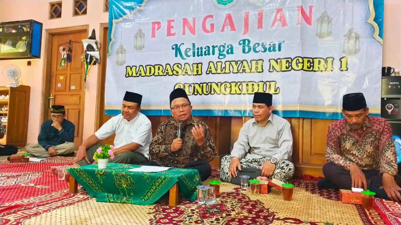 Kepala MAN 1 Gunungkidul, Kholis Muhajir dalam sambutannya menyampaikan bahwa kegiatan pengajian rutin ini menjadi wadah penting untuk memperkuat tali silaturahmi dan menumbuhkan semangat kebersamaan di lingkungan madrasah. “Pengajian rutin ini diharapkan mampu menguatkan segalanya, menambah kekuatan dalam bekerja, serta mempererat hubungan kekeluargaan di antara keluarga besar MAN 1 Gunungkidul. Dengan kebersamaan ini, kita dapat lebih kokoh dalam mengawal dan mendampingi anak didik menuju kesuksesan dunia dan akhirat,” tuturnya.