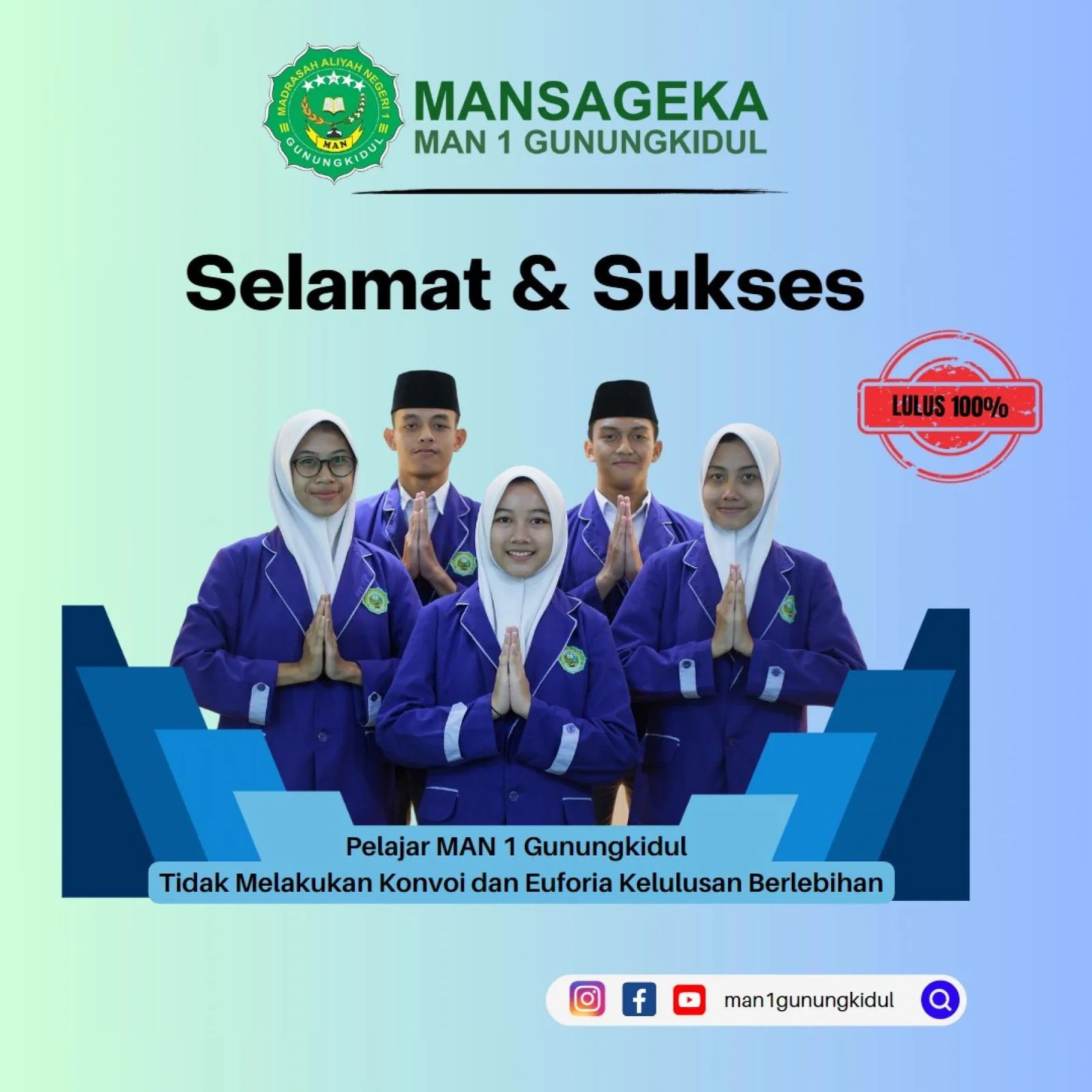 Wonosari (MAN 1 Gunungkidul)- Pengumuman kelulusan siswa MAN 1 Gunungkidul dilaksanakan pada hari Jumat (05/05/2023). MAN 1 Gunungkidul mengundang orang tua/wali peserta didik kelas XII untuk menerima Surat Keterangan Lulus (SKL). Jumlah peserta didik yang lulus di tahun pelajaran 2022/2003 yaitu 142.