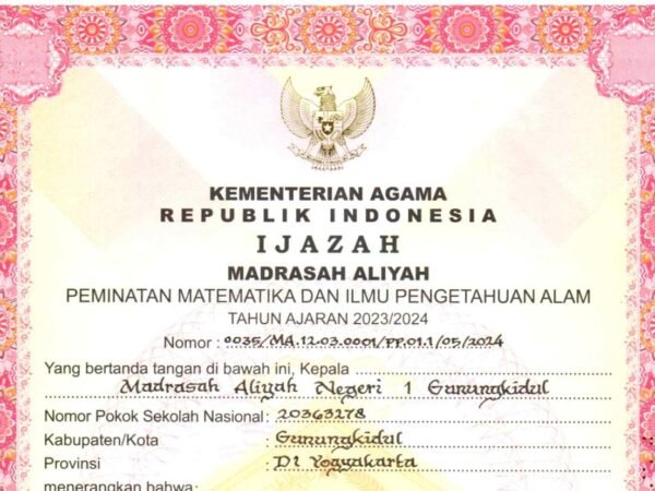 MAN 1 Gunungkidul membuka Pendaftaran Peserta Didik Baru tahun ajaran 2025-2026 Gelombang 1 mulai tanggal 14 – 25 April 2025. Jalur pendaftaran yang dibuka antara lain Jalur Asrama (20 kuota), Jalur Afirmasi (9 kuota), Jalur KKO (32 kuota) dan Jalur Reguler (24 kuota).