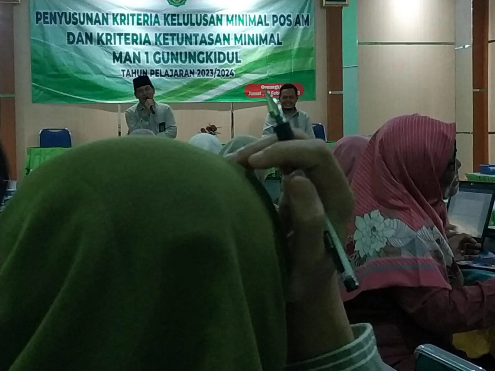 Wonosari (MAN 1 Gunungkidul)- MAN 1 Gunungkidul mengikuti workshop “Penyusunan Kriteria Kelulusan Minimal (KKM) POS AM dan Kriteria Ketuntasan Minimal (KKM)MAN 1 Gunungkidul tahun pelajaran 2023/2024”. Kegiatan ini dilaksanakan pada hari Jumat (23/02/2024) di aula madrasah.Koordinator JMD (Jogja Madrasah Digital), Akhmad Wakhidillah Agung, S.Pd.I. menjelaskan tentang penyusunan soal AM. Untuk tahun ini, soal AM di JMD menggunakan 5 tipe soal yaitu Pilihan Ganda, Pilihan Ganda Kompleks, Benar Salah, Menjodohkan, dan Isian SingkatWaka kurikulum, Nanang Yulianto, S. Pd., M.Sc. menjelaskan tentang Kriteria Kelulusan Minimal POS AM sesuai Dirjen Pendis no. 723 tahun 2023.Kepala MAN 1 Gunungkidul, Kholis Muhajir,S. Ag.,M.S.I. mengucapkan terima kasih atas support dan kerja “bareng semuanya, sehingga MAN 1 Gunungkidul memperoleh 3 penghargaan di Raker Kemenag Gunungkidul tahun 2024. “Berkaitan dengan AM (Asesmen Madrasah), diharapkan seluruh guru bisa terus memotivasi kepada siswa kelas XII untuk tingkatkan kualitas belajar, berlatih dan disiplin untuk meraih kesuksesan. Mari bersama-sama wujudkan program “Mansageka Bersinar” yaitu MAN 1 Gunungkidul Berhasil studi dan karier,” ujarnya.