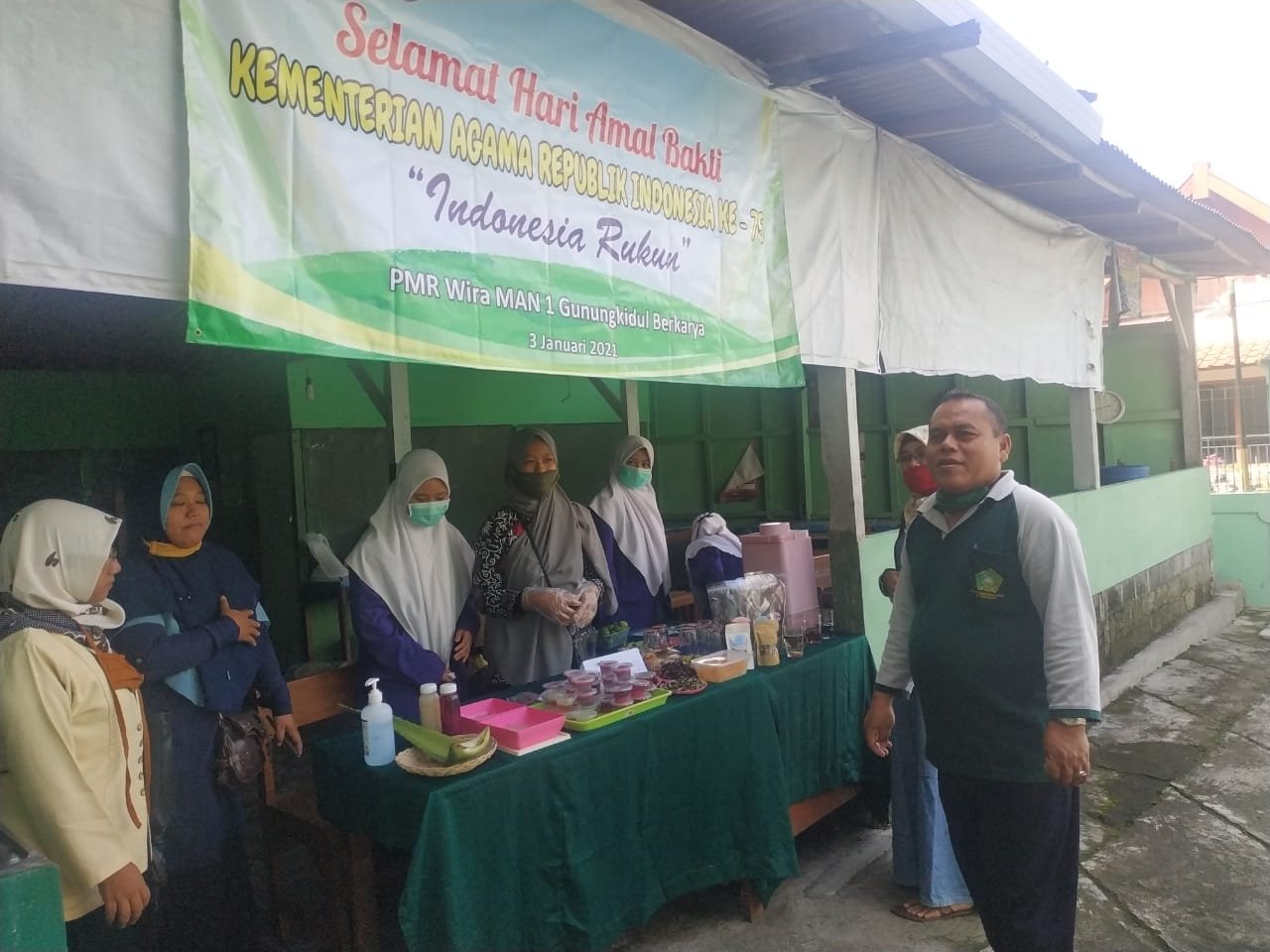 Wonosari (MAN 1 Gunungkidul) – Dalam rangka memperingati Hari Amal Bakti (HAB) ke-75 Kementerian Agama, Kementerian Agama Kabupaten Gunungkidul menyelenggarakan lomba tenis meja yang diselenggarakan di MAN 1 Gunungkidul. Sebagai wujud partisipasi warga madrasah, anggota Palang Merah Remaja (PMR) Wira MAN 1 Gunungkidul ikut memeriahkan lomba tersebut dengan membuka bazar, Selasa (29/12/2020).
