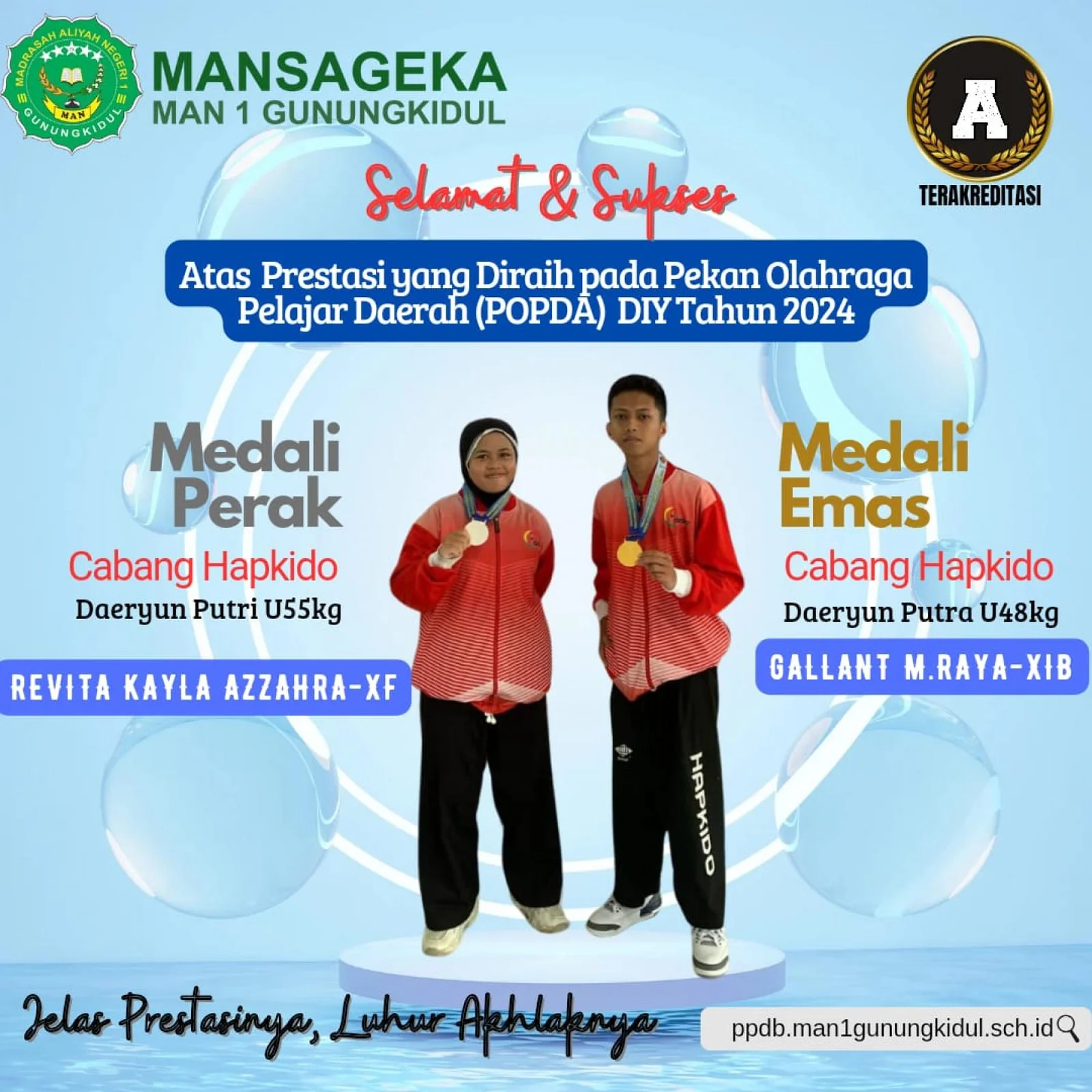 Wonosari (MAN 1 Gunungkidul)- Dua siswa MAN 1 Gunungkidul berhasil meraih prestasi di Pekan Olahraga Daerah (POPDA)  DIY tahun 2024 cabang Hapkido. Perlombaan dilaksanakan di Graha Satria Bangsa Ambarbinagun Bantul pada hari Kamis  (7/03/2024).
