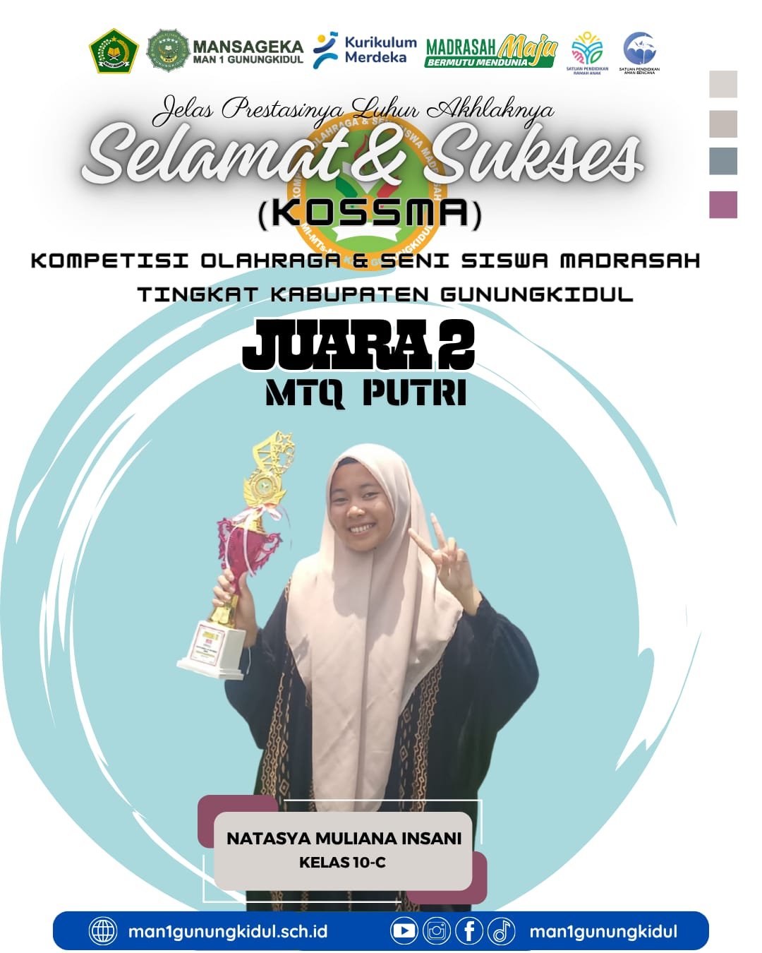 Natasya menerima piala penghargaan Juara 2, yang menjadi simbol kerja keras dan ketekunannya dalam mendalami ilmu Al Quran. Pencapaian ini menambah daftar panjang prestasi nonakademik yang diraih oleh siswa-siswi MAN 1 Gunungkidul.