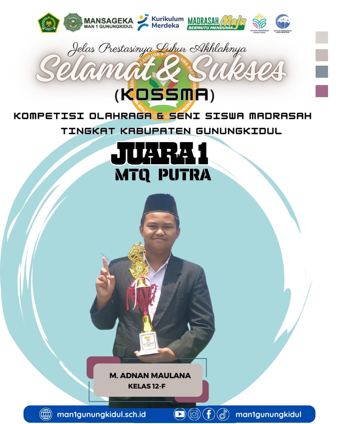 Keberhasilan Adnan Maulana ini semakin mengukuhkan posisi MAN 1 Gunungkidul sebagai lembaga pendidikan yang unggul dalam mencetak siswa berprestasi, baik dalam akademik maupun nonakademik, khususnya di bidang keagamaan.