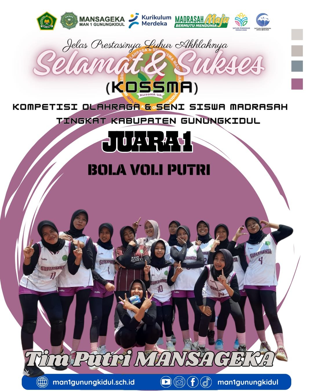 Dalam pertandingan final yang berlangsung sengit dan dramatis, tim voli putri MAN 1 Gunungkidul menunjukkan performa terbaiknya dengan kerja sama tim yang solid, smash yang tajam, serta pertahanan yang kokoh. Kemenangan ini membuktikan hasil dari latihan keras dan disiplin yang telah dijalani para atlet madrasah.