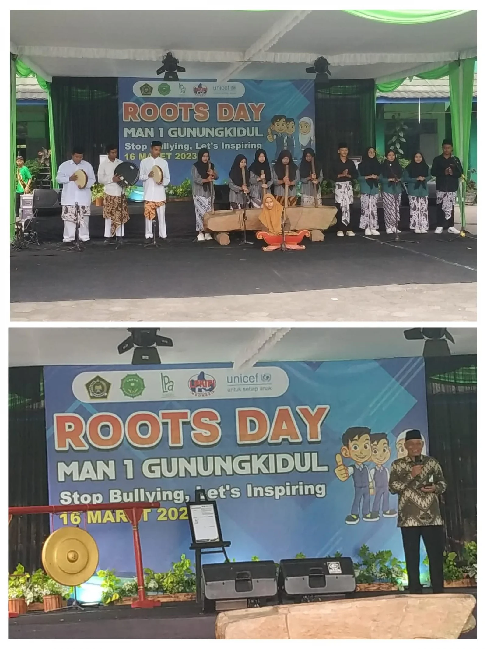 Wonosari MAN 1 Gunungkidul – MAN 1 Gunungkidul mengadakan Roots Day dengan tema “Stop Bullying, Let’s Inspire.” Kegiatan ini diselenggarakan di halaman madrasah pada hari Kamis (16/03/2023), bertepatan dengan acara Harlah ke-45 MAN 1 Gunungkidul.
