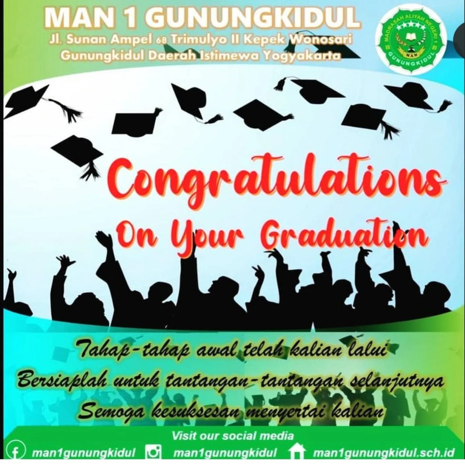 Tanggal 3 Mei 2021 SMA dan MA secara serempak mengumumkan kelulusan peserta didik kelas XII tahun pelajaran 2020-2021. MAN 1 Gunungkidul menyelenggarakan pengumuman kelulusan secara luring dengan tetap memperhatikan protokol kesehatan. Surat Keterangan Lulus diterimakan kepada orang tua/wali peserta didik.