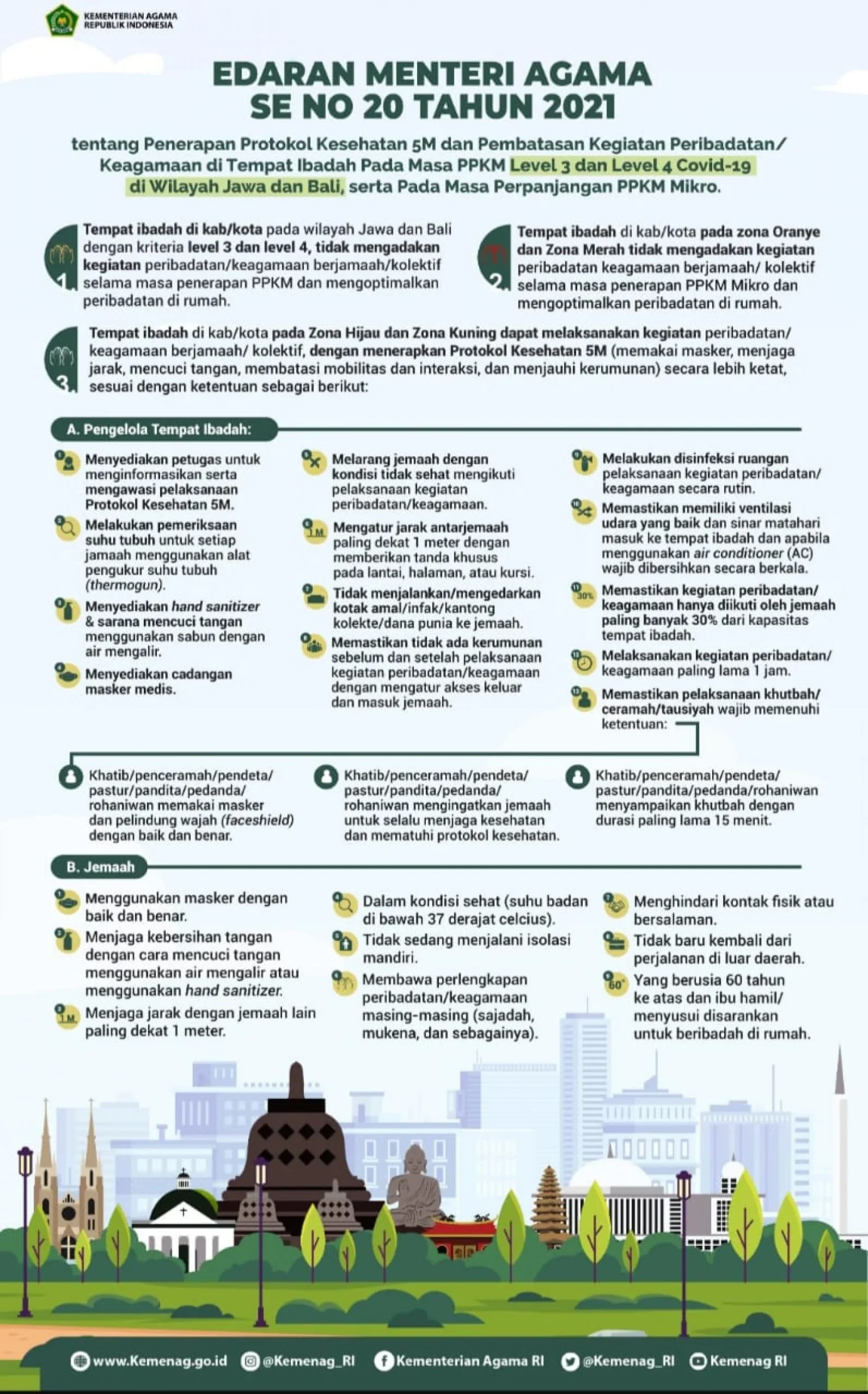 SURAT EDARAN MENTERI AGAMA NO 20 TAHUN 2021 TENTANG PEMBATASAN KEGIATAN DIMASA PPKM