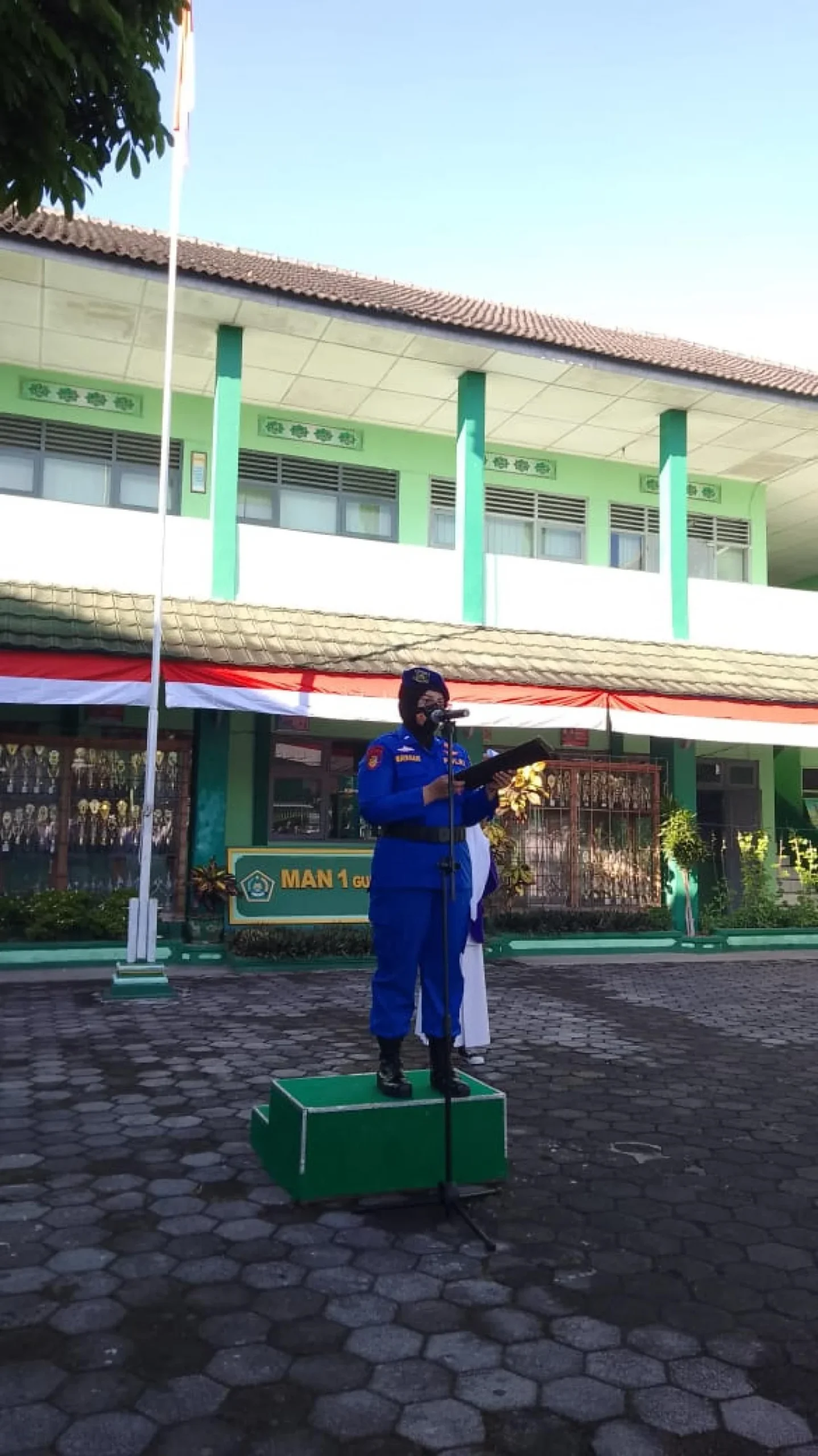 Wonosari (MAN 1 Gunungkidul) MAN 1 Gunungkidul melaksanakan upacara bendera pada hari Senin (8/08/2022) di halaman madrasah. Selaku pembina upacara adalah polwan Gunungkidul.