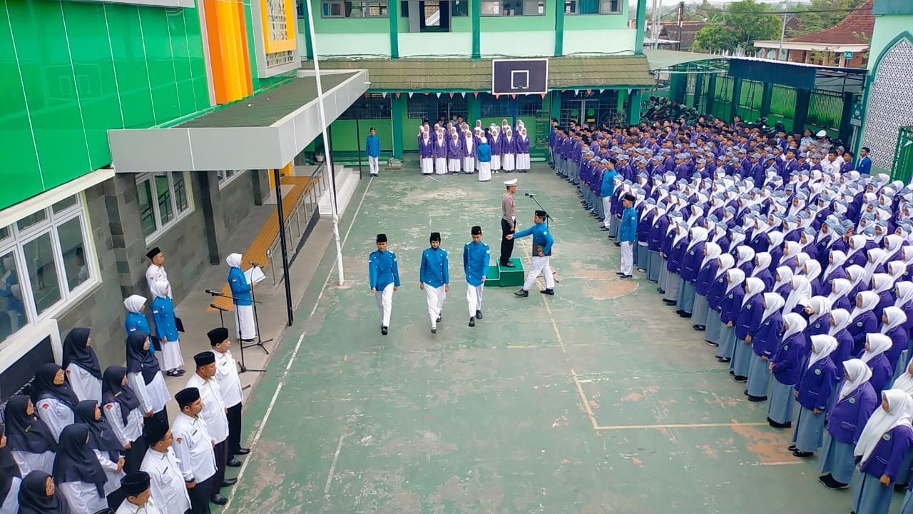 Wonosari – MAN 1 Gunungkidul menggelar upacara bendera pada Senin (8/9/2025) di halaman madrasah. Upacara rutin yang diikuti oleh seluruh siswa, guru, dan tenaga kependidikan ini berlangsung khidmat dengan pembina upacara dari jajaran Polsek Wonosari.