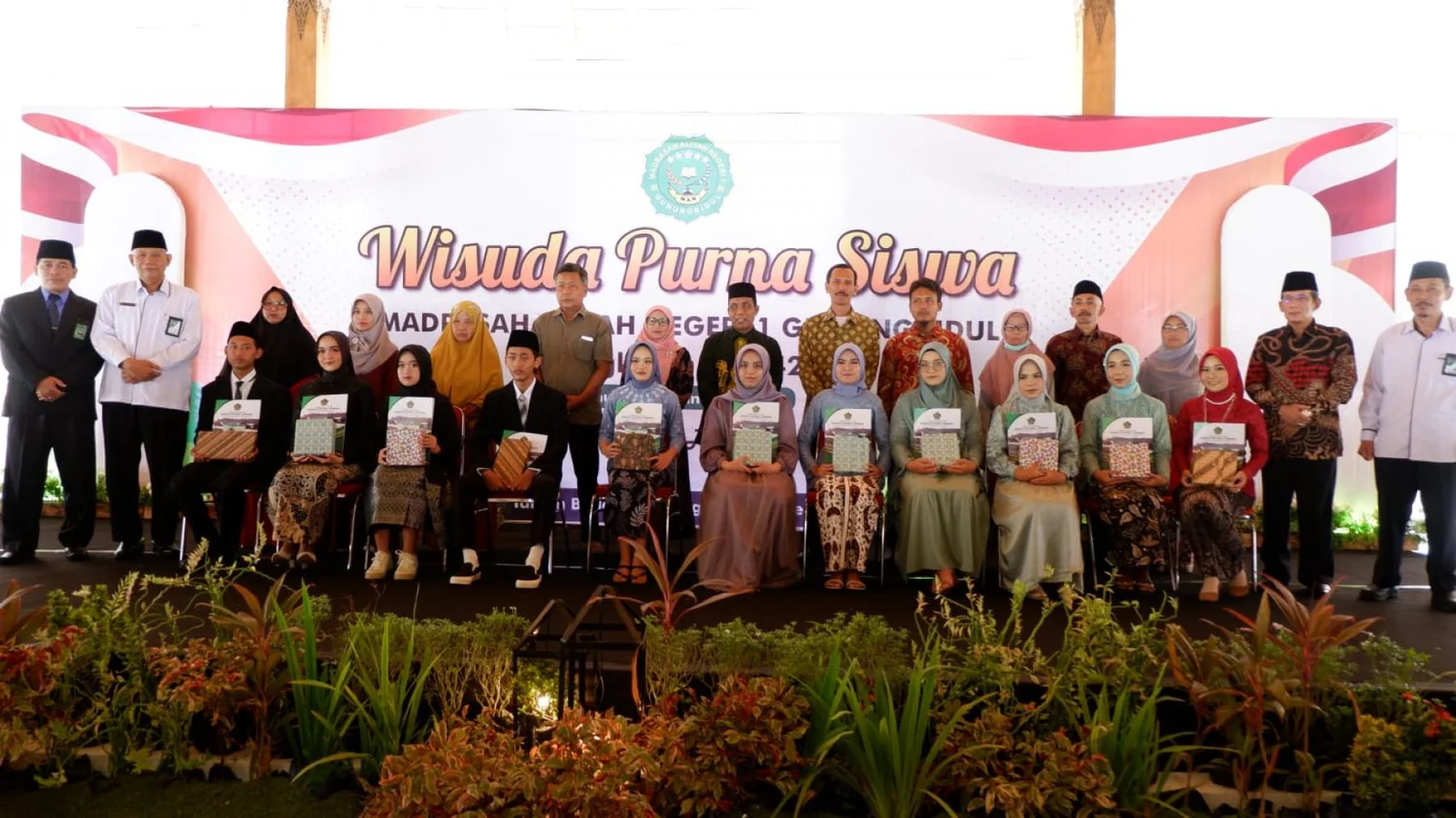 Wonosari (MAN 1 Gunungkidul)- Wisuda siswa-siswa kelas XII tahun pelajaran 2022/2023 dilaksanakan di Taman Budaya Gunungkidul (TBG) pada hari Selasa (16/05/2023). Tema yang diusung yaitu “Jelas Prestasinya Luhur Akhlaknyaâ€. Hadir dalam acara tersebut Kakankemenag Gunungkidul, ketua komite, pengawas, kepala madrasah, guru, pegawai MAN 1 Gunungkidul, para wisudawan, orang tua/wali wisudawan, dan perwakilan dari Dinas Kebudayaan Gunungkidul.